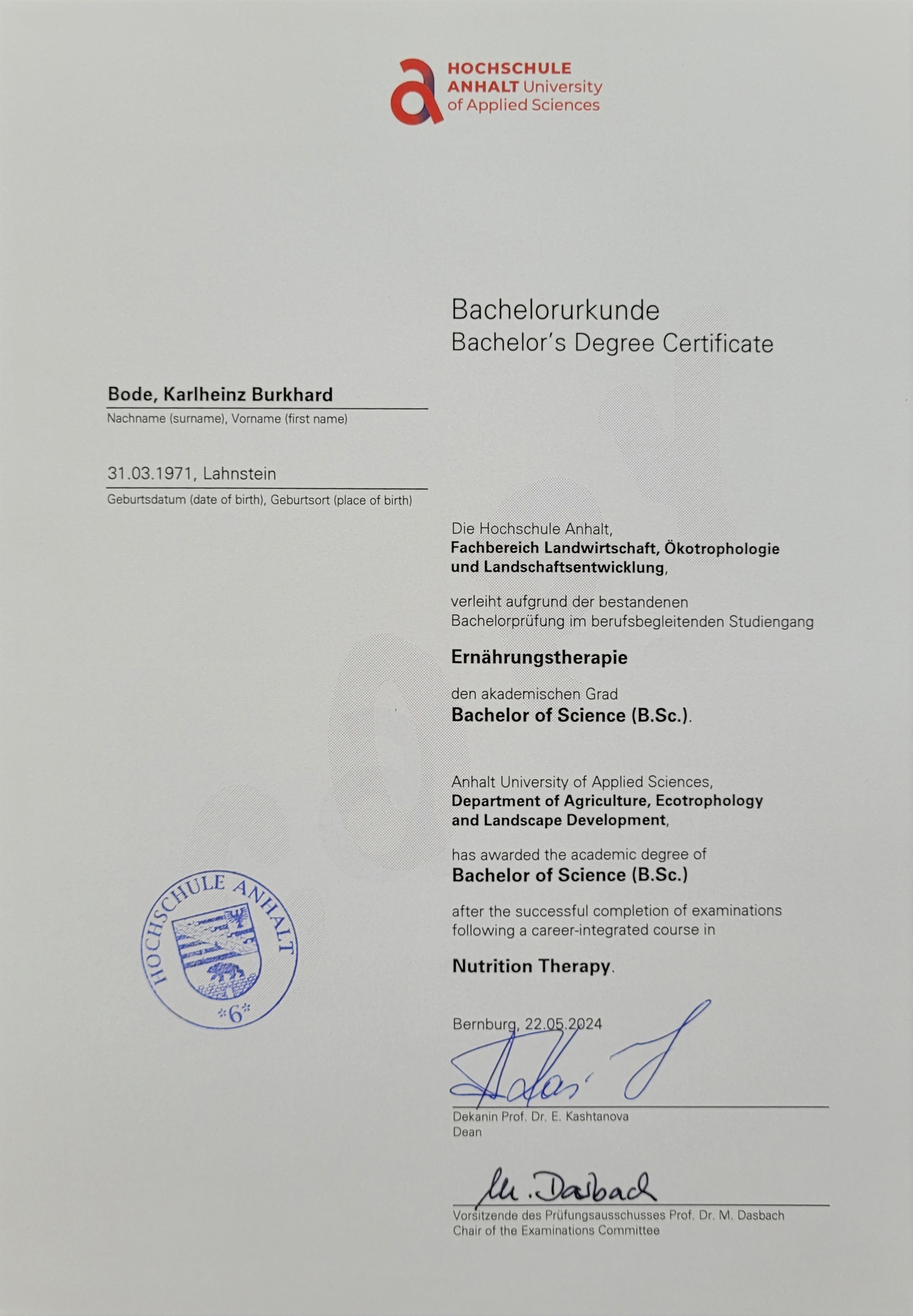 Mit dem Abschluss des Bachelor-Studiums an der Hochschule Anhalt, University of Applied Science im Mai 2024 darf ich nun den Titel