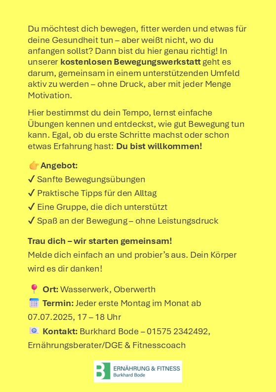 - Kompaktkurse, die sowohl Ernährung als auch Bewegung beinhalten