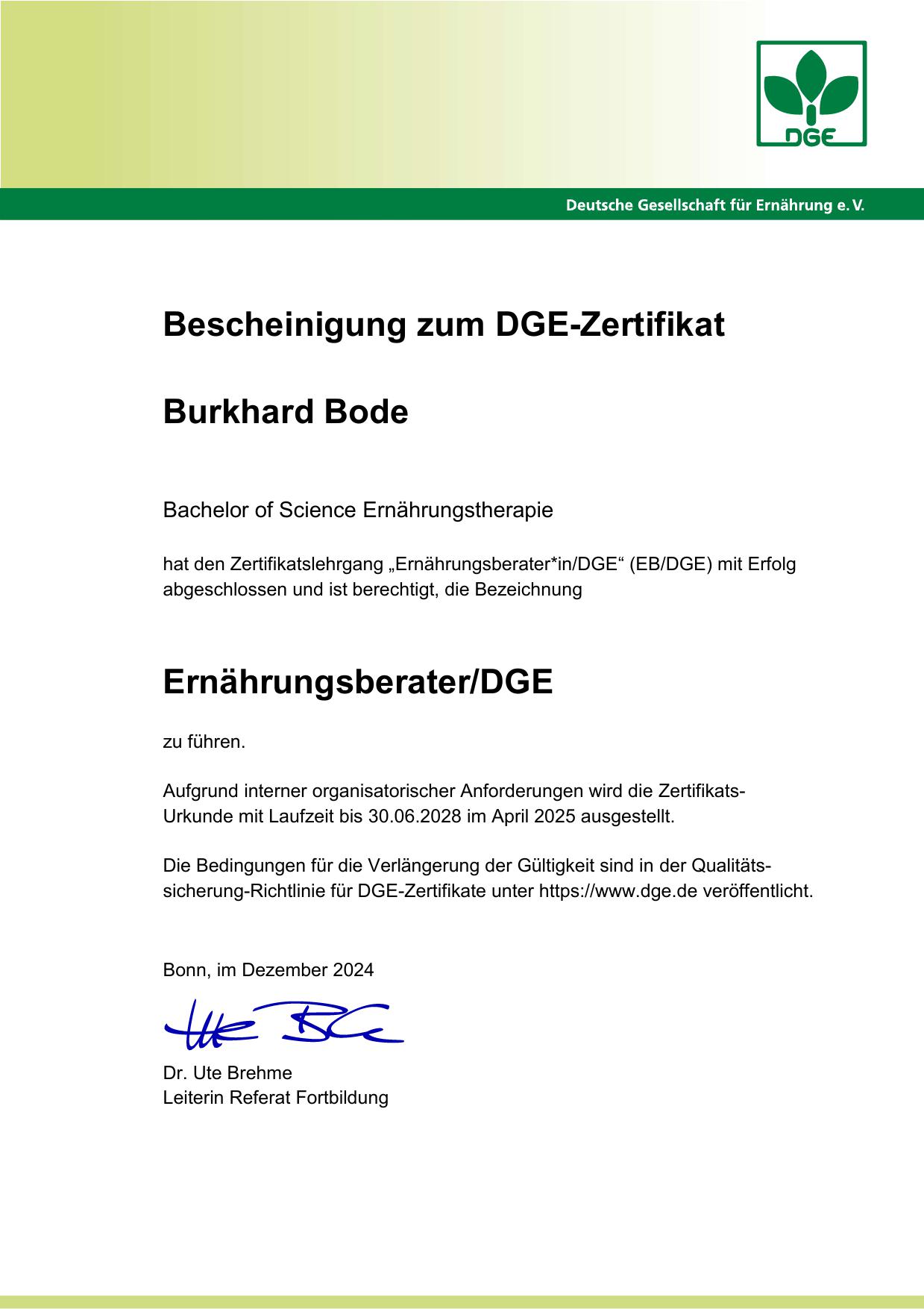tragen. Damit einhergehend erfülle ich die Zulassungsvoraussetzungen, die es ermöglichen nach §20 SGB V zur primären Prävention und Gesundheitsförderung und auch nach §43 SGB V zurr therapeutischen Ernährungsberatung zu arbeiten, was in beiden Fällen von den jeweiligen Krankenkassen unterstützt werden kann.